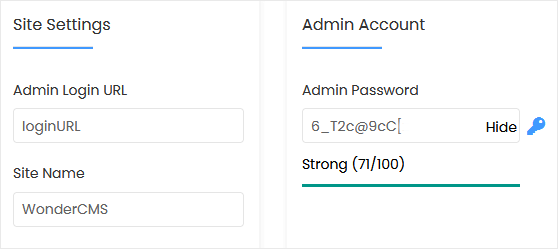 - Site Name: Enter the name of your website, such as WonderCMS.
